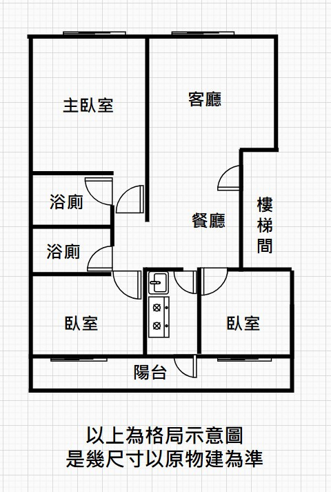 主建物係指客廳、餐廳、臥房、浴室、廚房等室內面積。